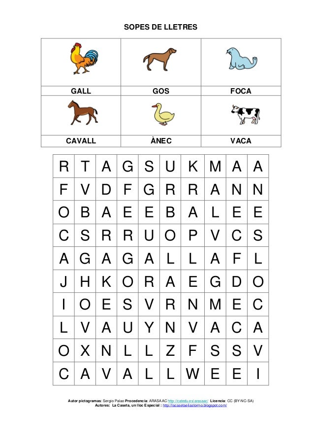I ara fem la sopa de lletres, encerclant els noms d´animals que trobem: (Y ahora hacemos la sopa de letras rodeando los nombres de animales que encontramos.